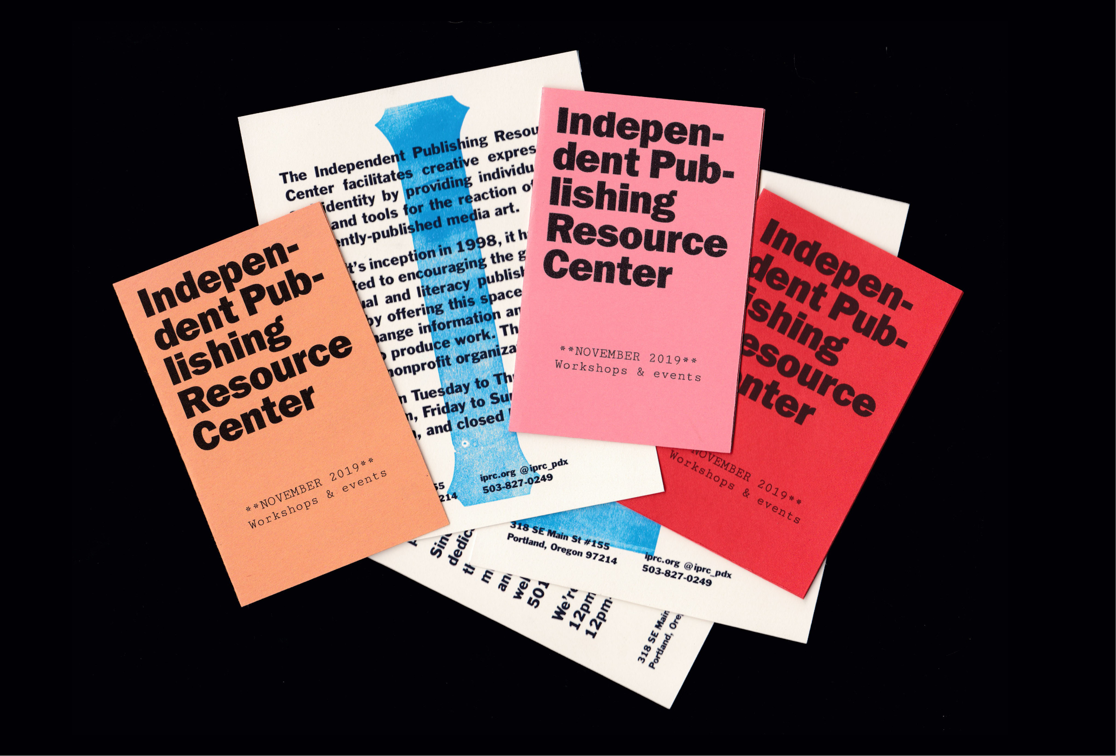 Monthly event calendars for the Independent Publishing Resource Center in Portland, an organization providing the space, tools, and resources to create independently published artwork.