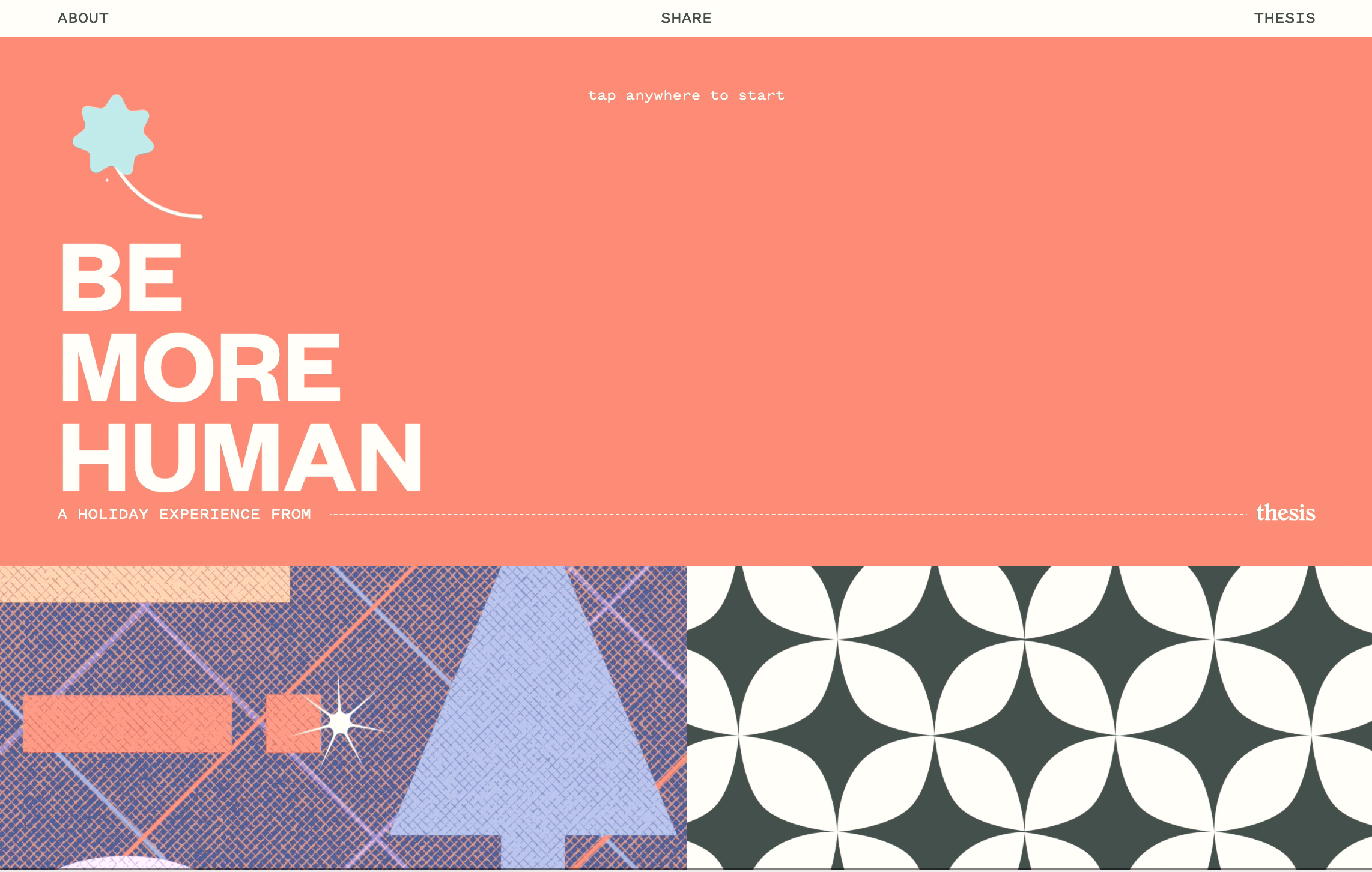 A customized web experience for our clients and partners as a 2021/22 holiday gift. Our team at Thesis art directed, designed, wrote and developed every aspect of the experience.